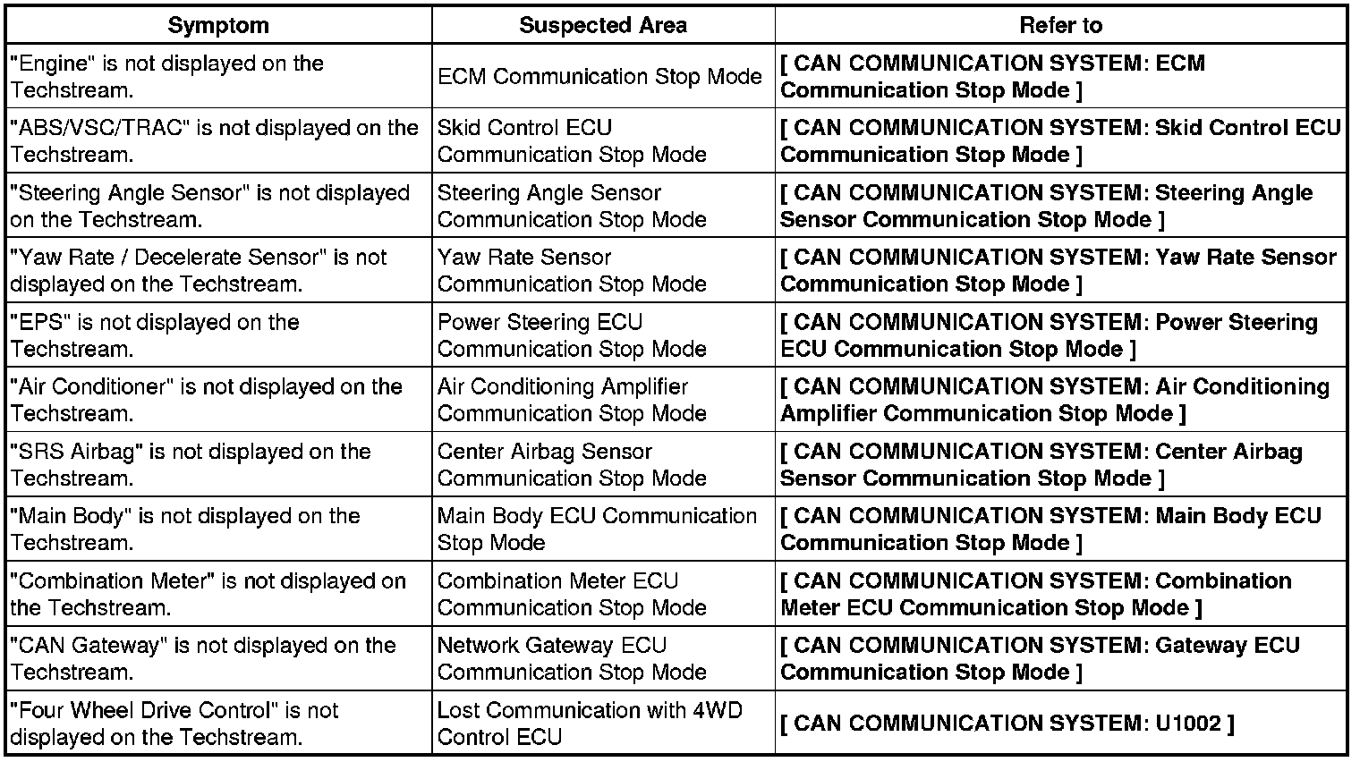 NETWORKING: CAN COMMUNICATION SYSTEM: PROBLEM SYMPTOMS TABLE