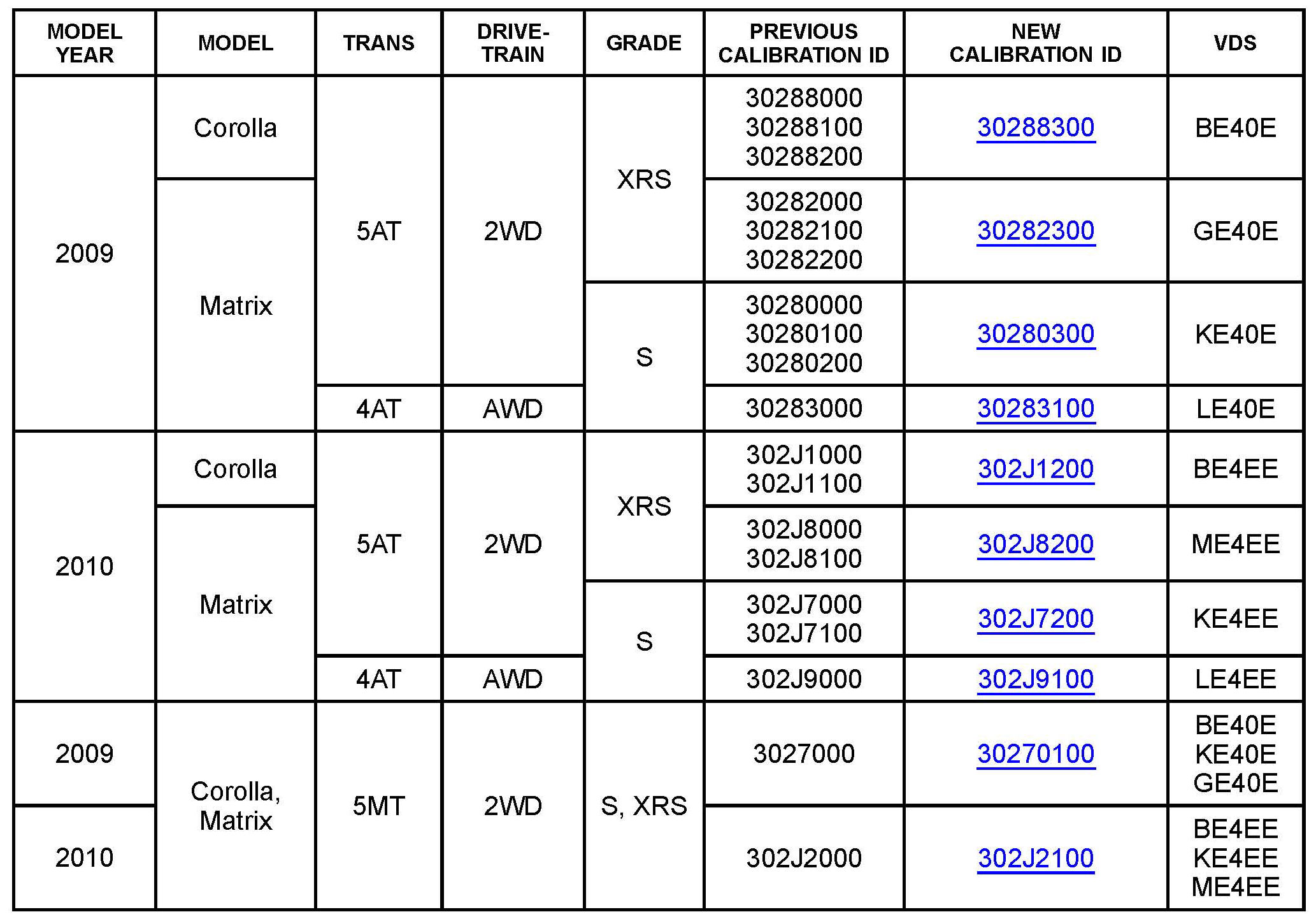 Refer to the Technical Information System (TIS) 2009 model year Corolla or Matrix Repair Manual: