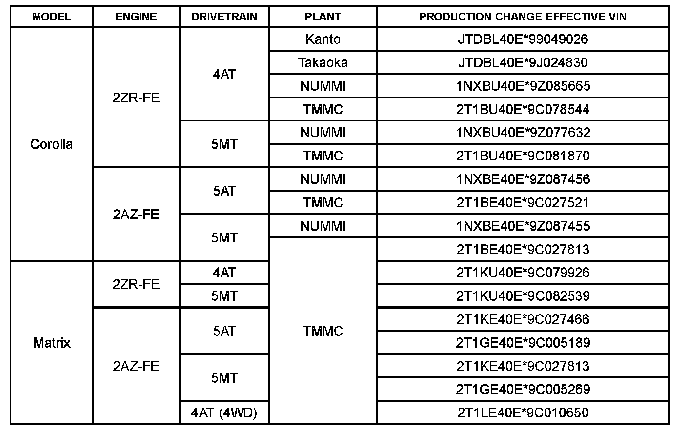 This TSB applies to vehicles produced BEFORE the Production Change Effective VINs as shown.