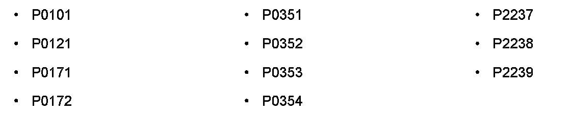M.I.L. "ON" DTC P0101, P0121, P0171, P0172, P035 #, P223 #
