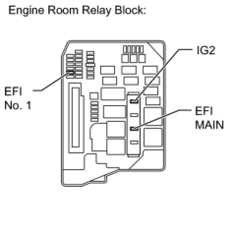 (a) Remove the EFI MAIN fuse, IG2 fuse and EFI No. 1 fuse from the engine room relay block.