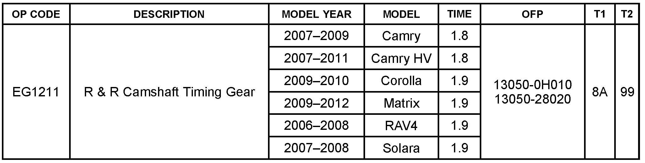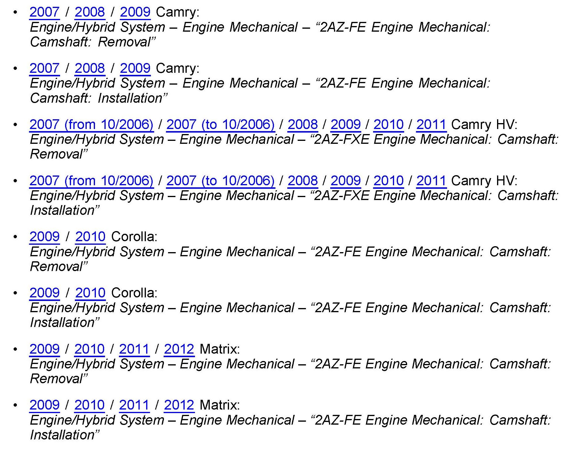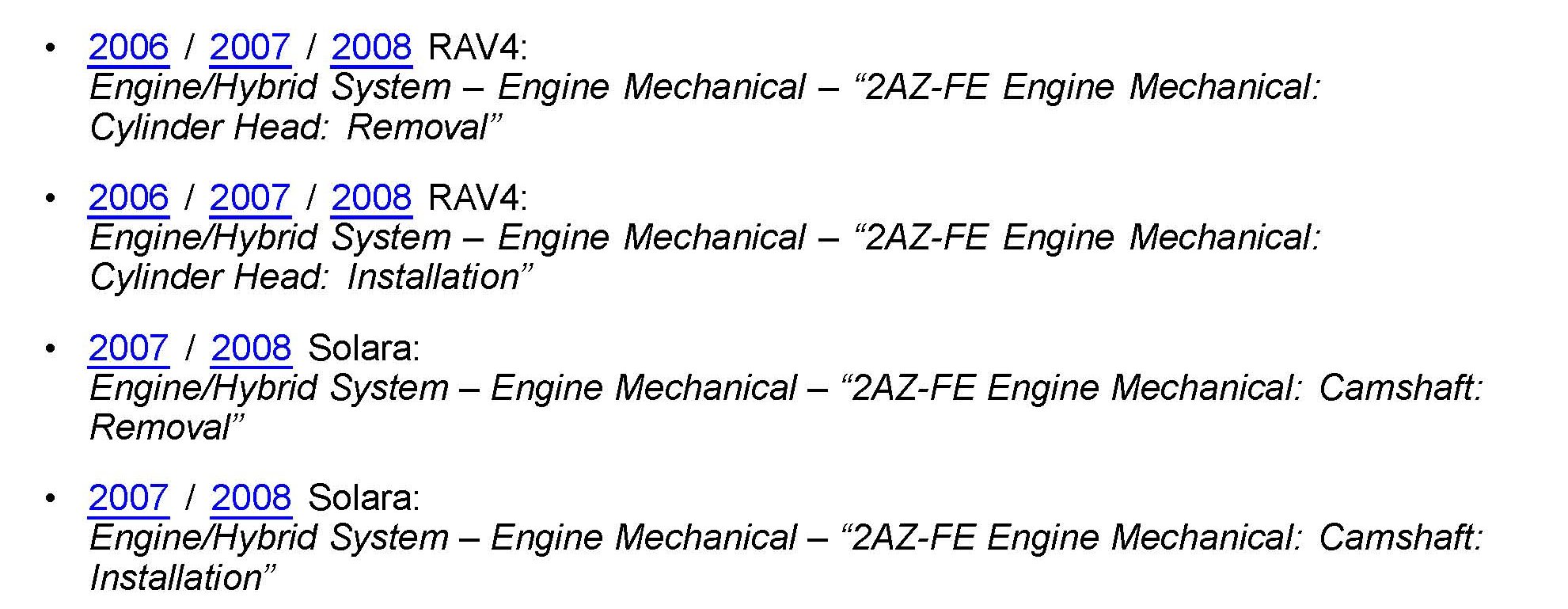 For RAV4 repairs refer to the Repair Manual procedure for 2007 Camry to simplify the repair instructions for camshaft removal instead of cylinder head removal.