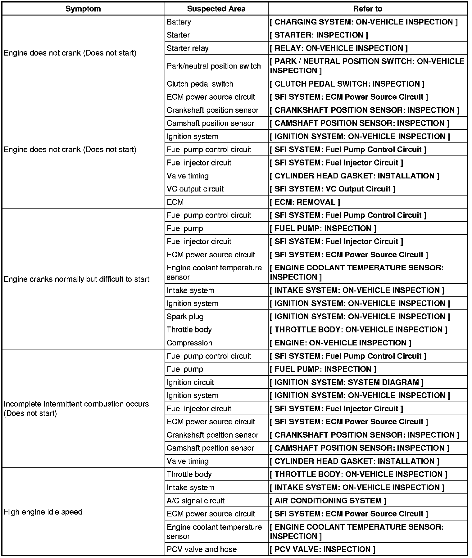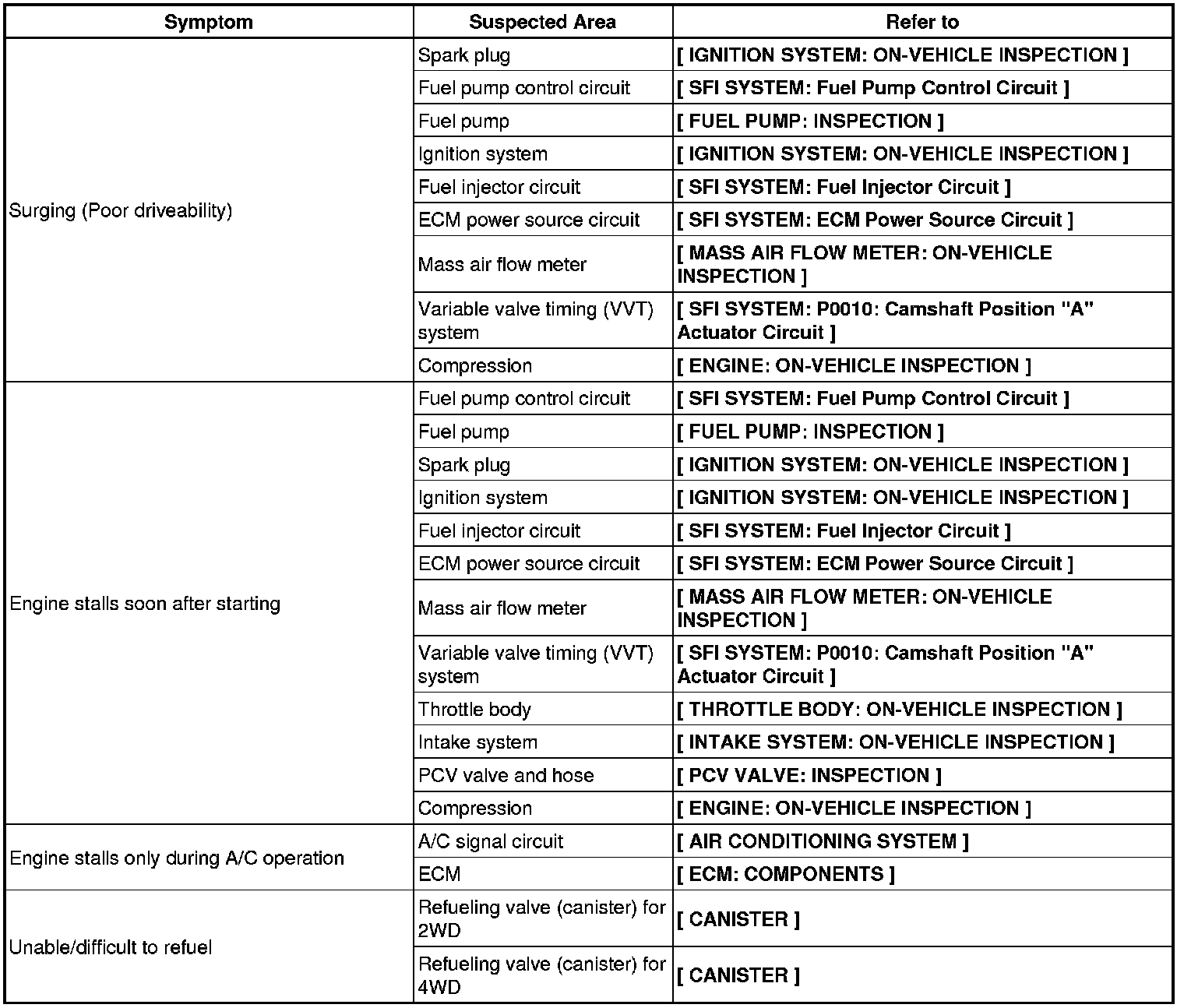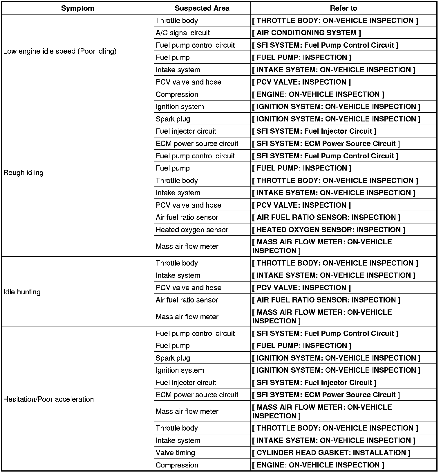 2AZ-FE ENGINE CONTROL: SFI SYSTEM: PROBLEM SYMPTOMS TABLE
