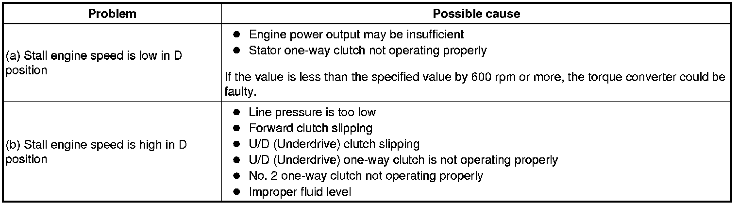 The object of this test is to check the overall performance of the transaxle and engine by measuring the stall speeds in the D position.