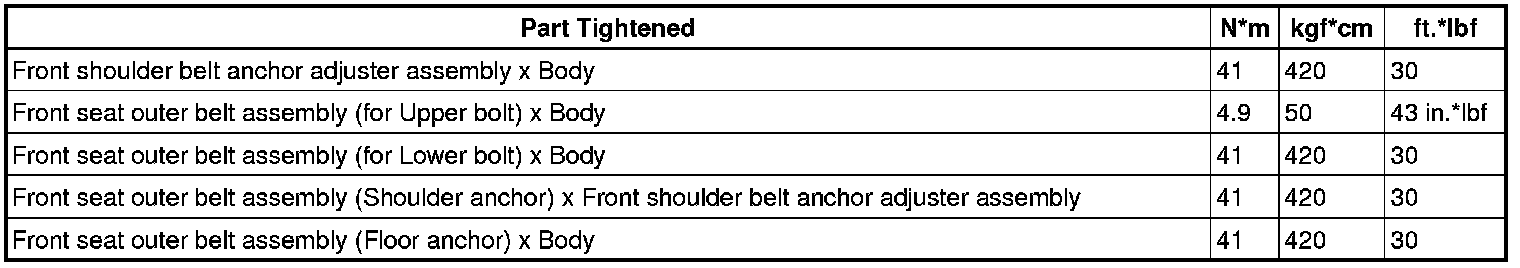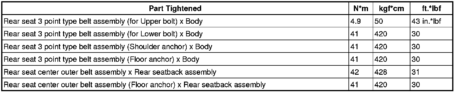 SPECIFICATIONS: SEAT BELT: TORQUE SPECIFICATIONS