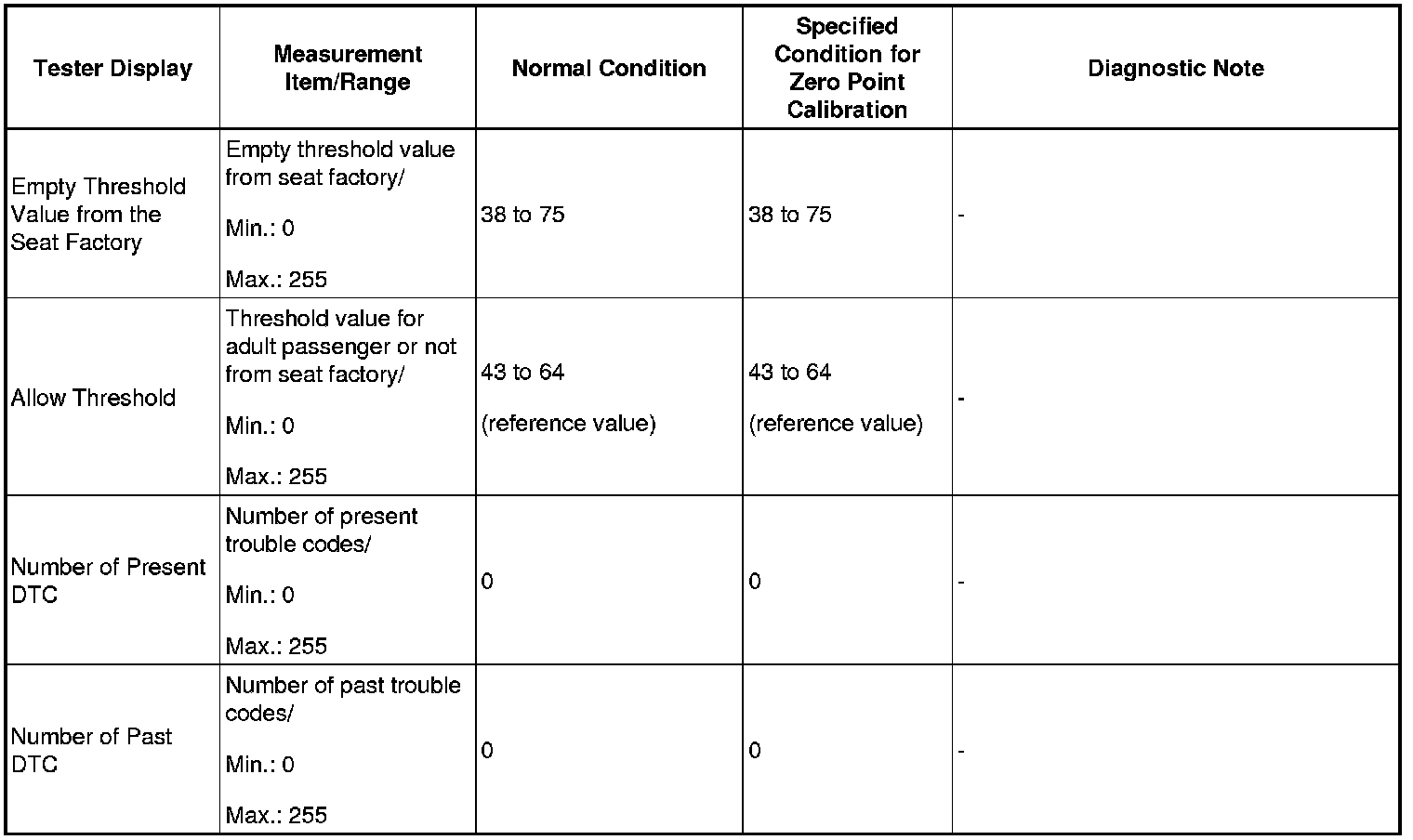 1. DATA LIST FOR OCCUPANT CLASSIFICATION ECU