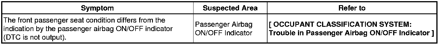 SUPPLEMENTAL RESTRAINT SYSTEMS: OCCUPANT CLASSIFICATION SYSTEM: PROBLEM SYMPTOMS TABLE
