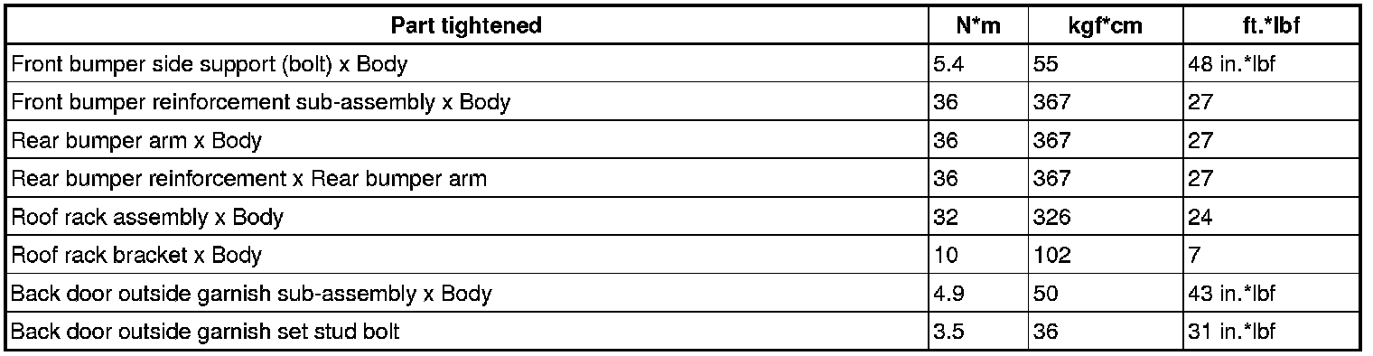 SPECIFICATIONS: EXTERIOR PANELS / TRIM: TORQUE SPECIFICATIONS