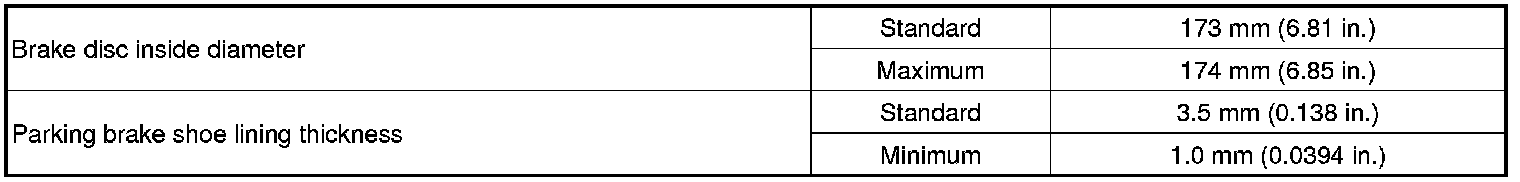 SPECIFICATIONS: PARKING BRAKE: SERVICE DATA