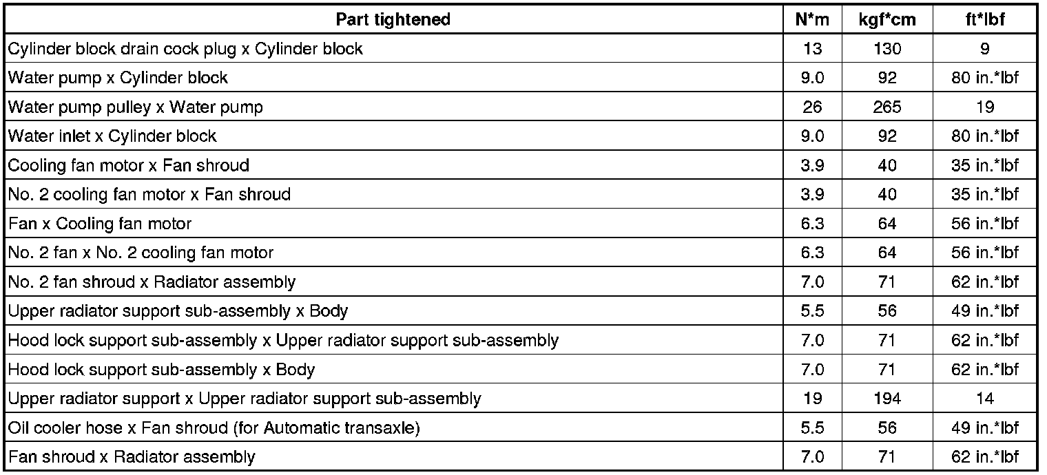 SPECIFICATIONS: 2AZ-FE COOLING: TORQUE SPECIFICATIONS