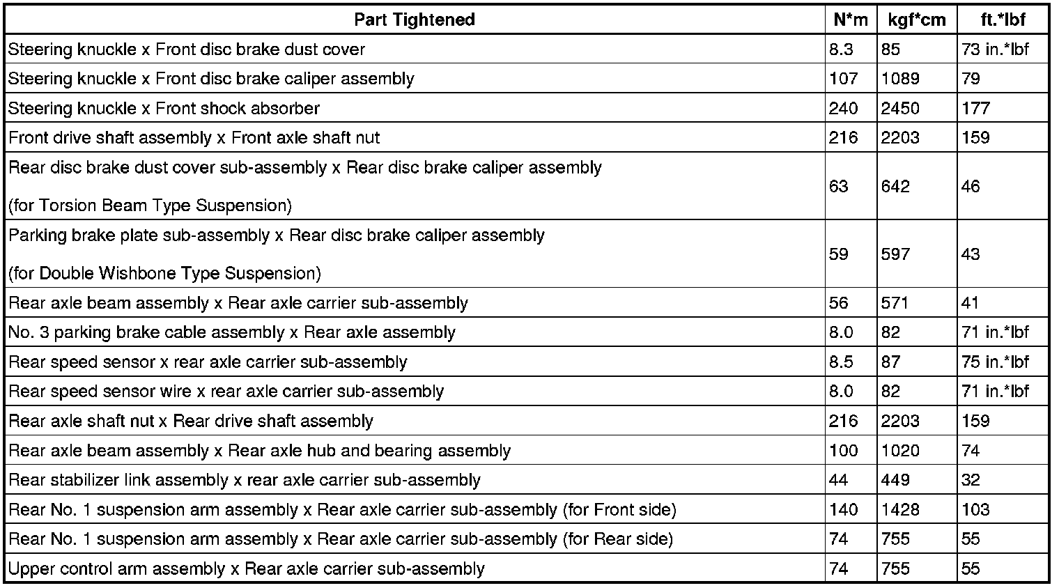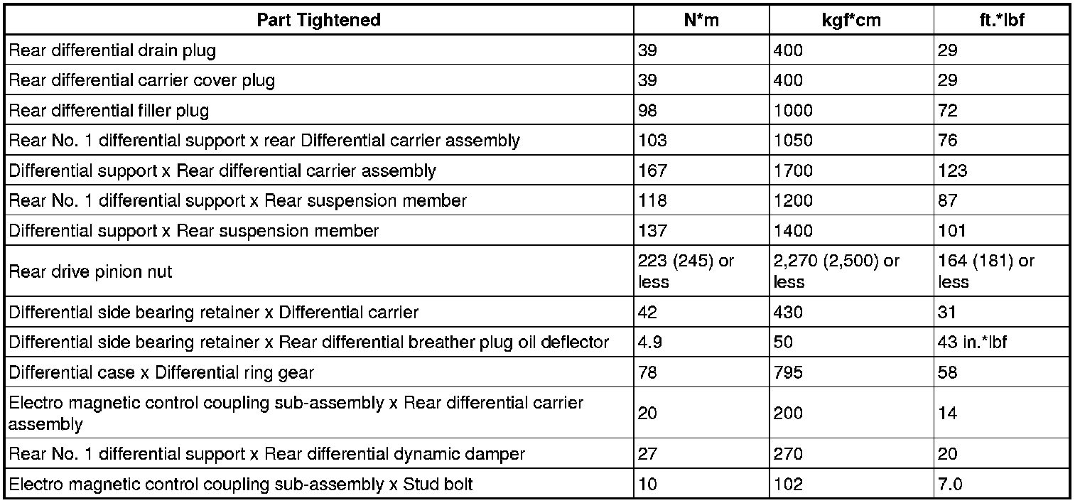 SPECIFICATIONS: AXLE AND DIFFERENTIAL: TORQUE SPECIFICATIONS