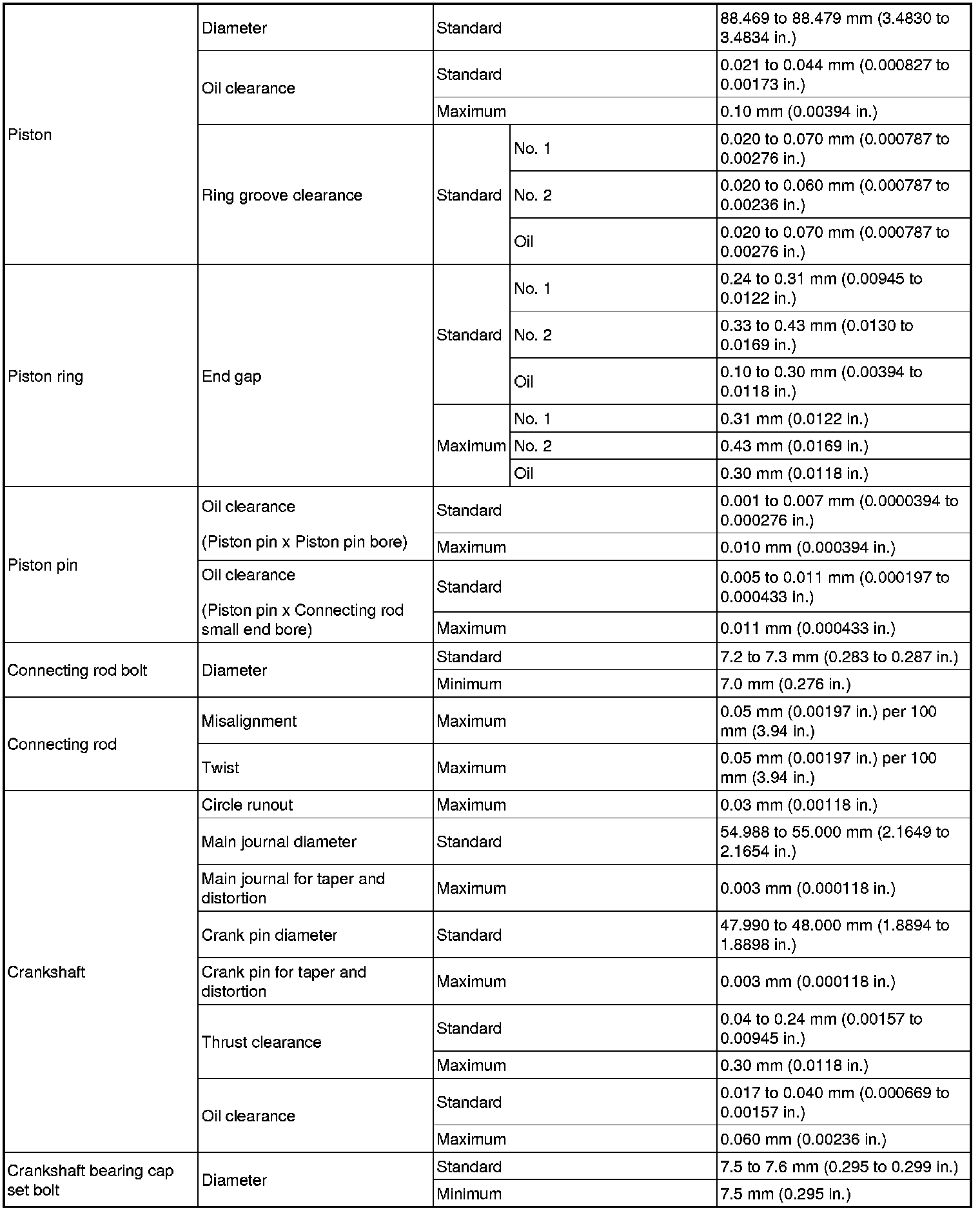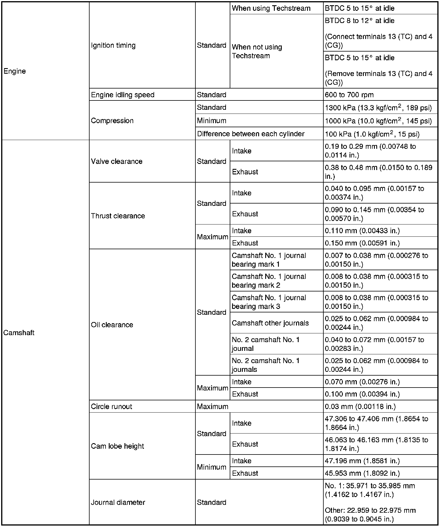 SPECIFICATIONS: 2AZ-FE ENGINE MECHANICAL: SERVICE DATA