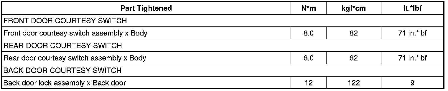 SPECIFICATIONS: LIGHTING (INT): TORQUE SPECIFICATIONS