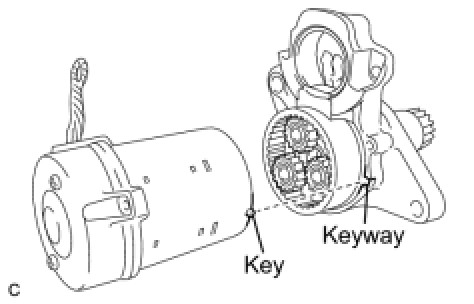 (a) Align the key of the starter yoke with the keyway located on the starter drive housing assembly.