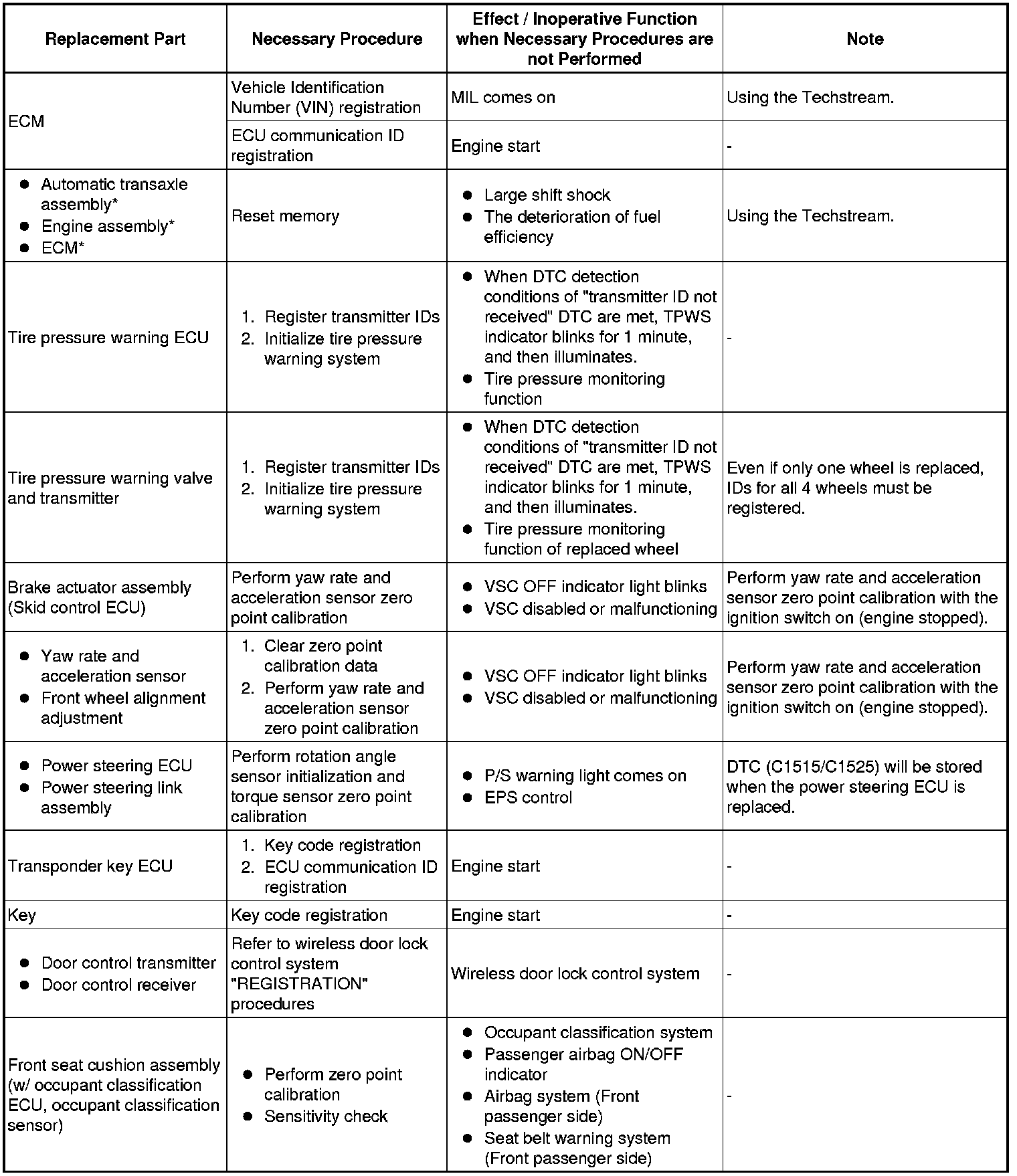 It is necessary to register the transmitter IDs in the tire pressure warning ECU when replacing a tire pressure warning valve and transmitter and/or a tire pressure warning ECU.