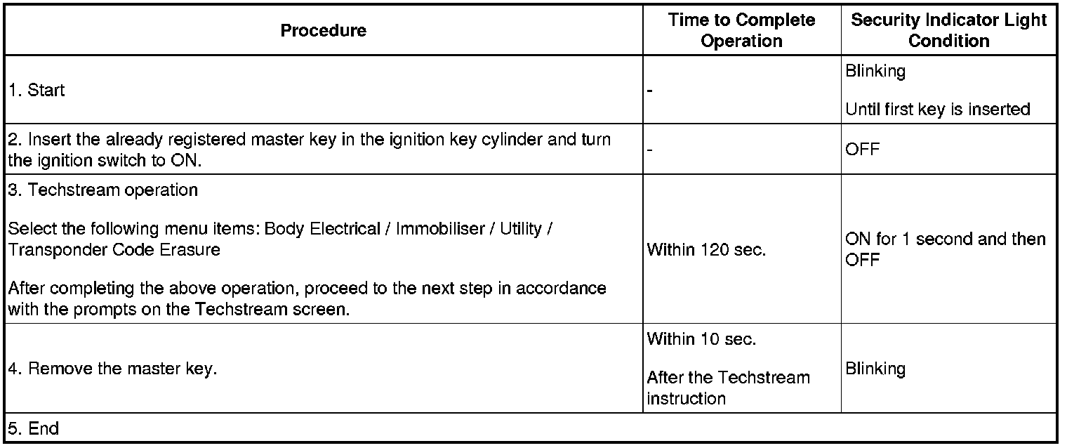 (b) Finish the automatic key code of registration mode. The automatic key code of registration mode can be forced to end when at least 1 key code (immobiliser code) for the master key has been registered.