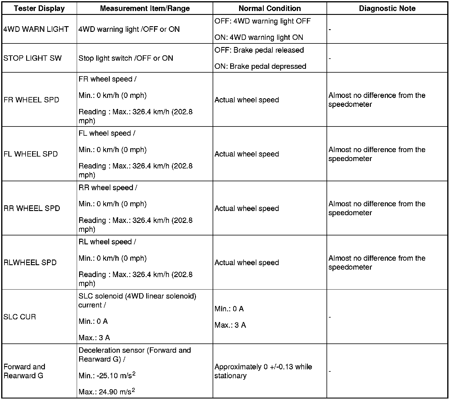 (f) Enter the following menus: Chassis / 4WD / Data List.