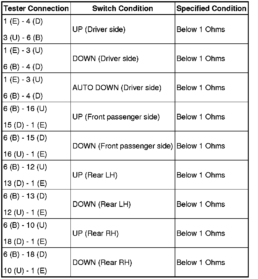 WINDOW / GLASS: POWER WINDOW MASTER SWITCH: INSPECTION