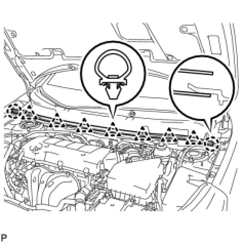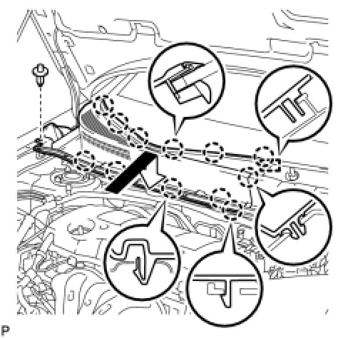 (b) Engage the 2 claws to install the hood to cowl top seal.