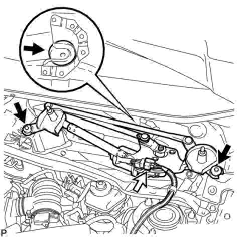 (a) Install the windshield wiper motor and link assembly with the 2 bolts as shown in the illustration.