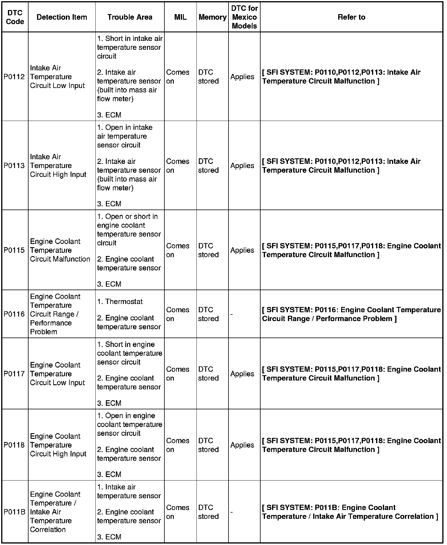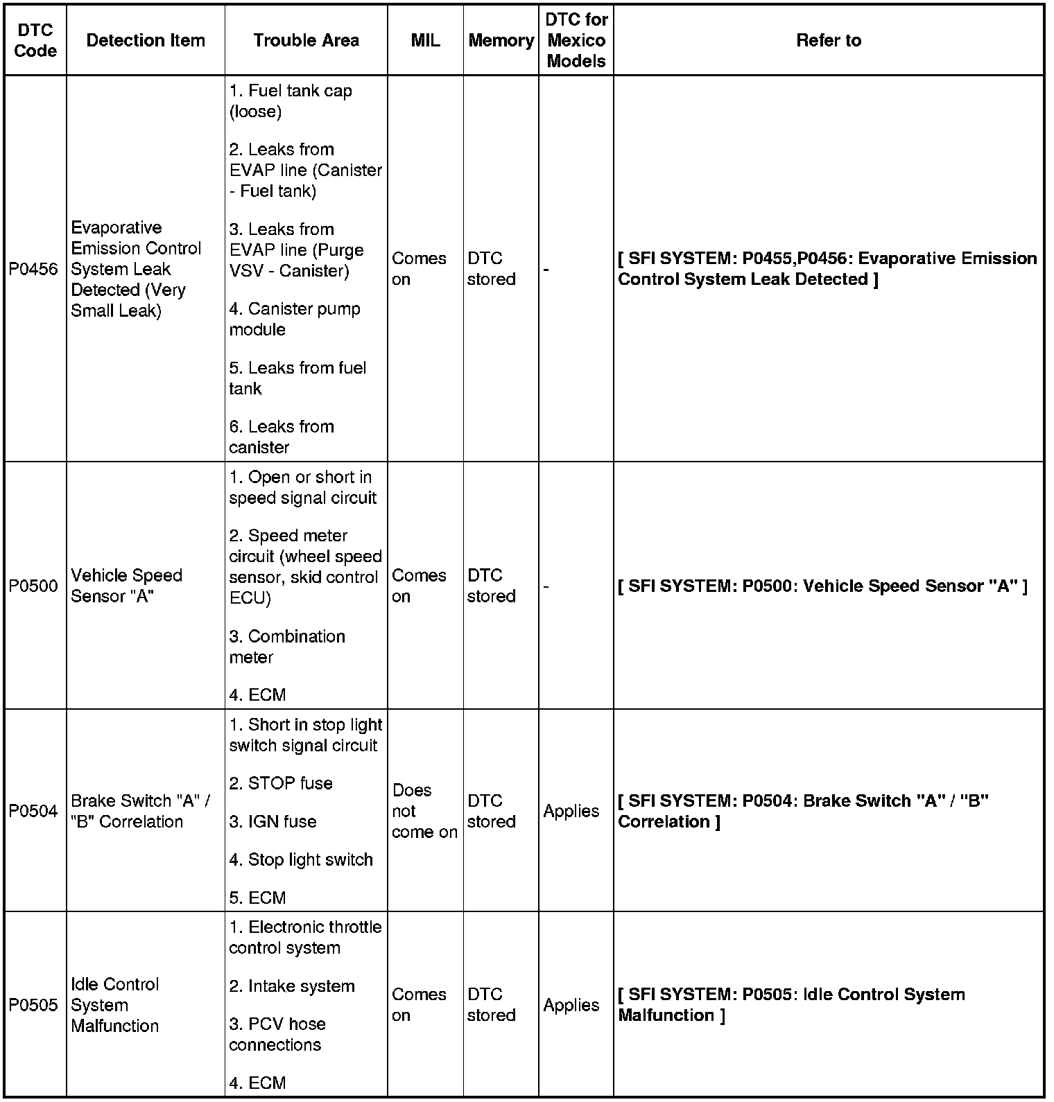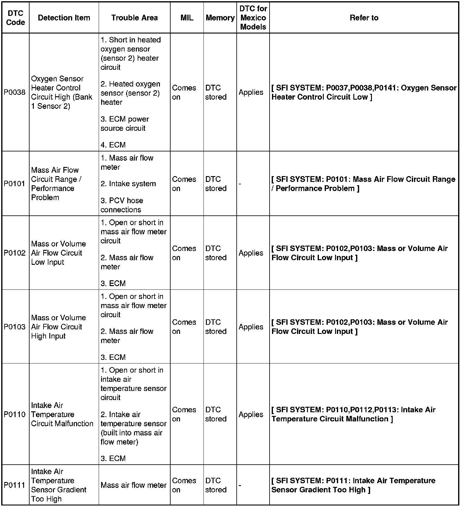 If a trouble code is displayed during the DTC check, inspect the trouble areas listed for that code. For details of the code, refer to the "Refer to" below.