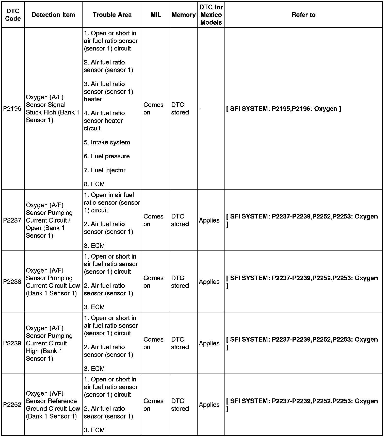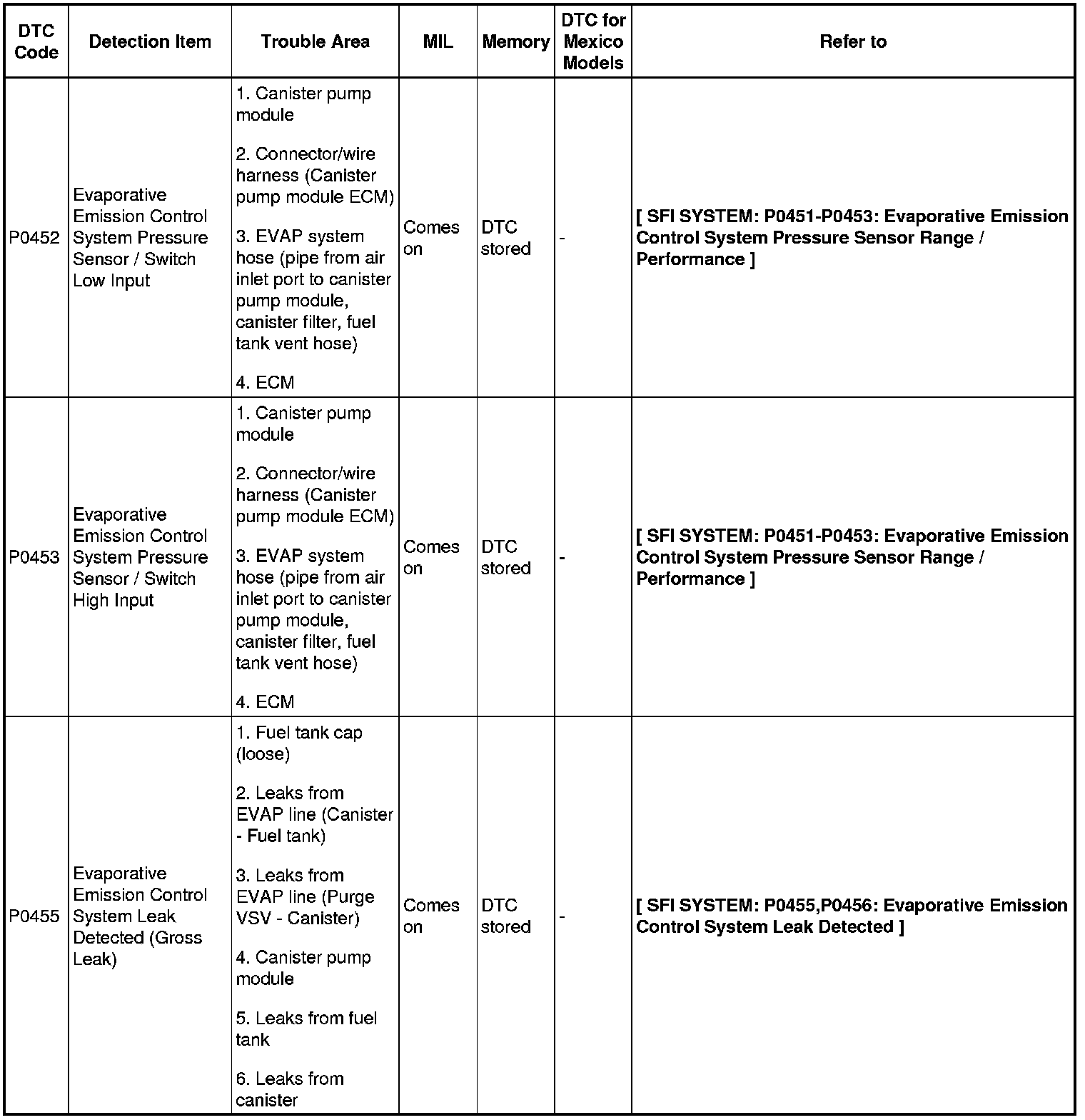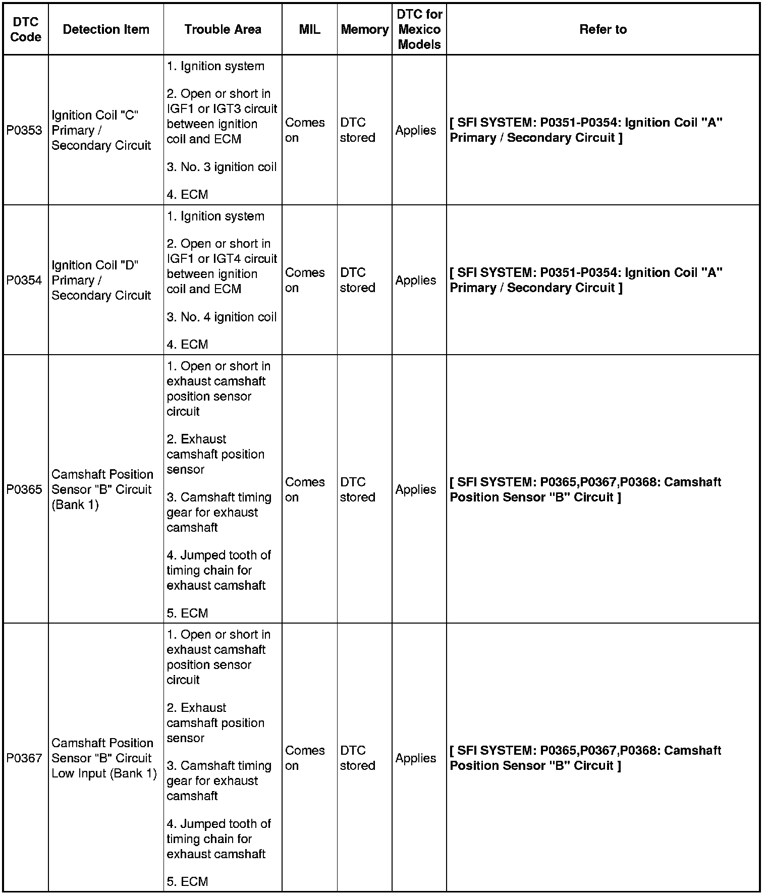 If a trouble code is displayed during the DTC check, inspect the trouble areas listed for that code. For details of the code, refer to the "Refer to" below.