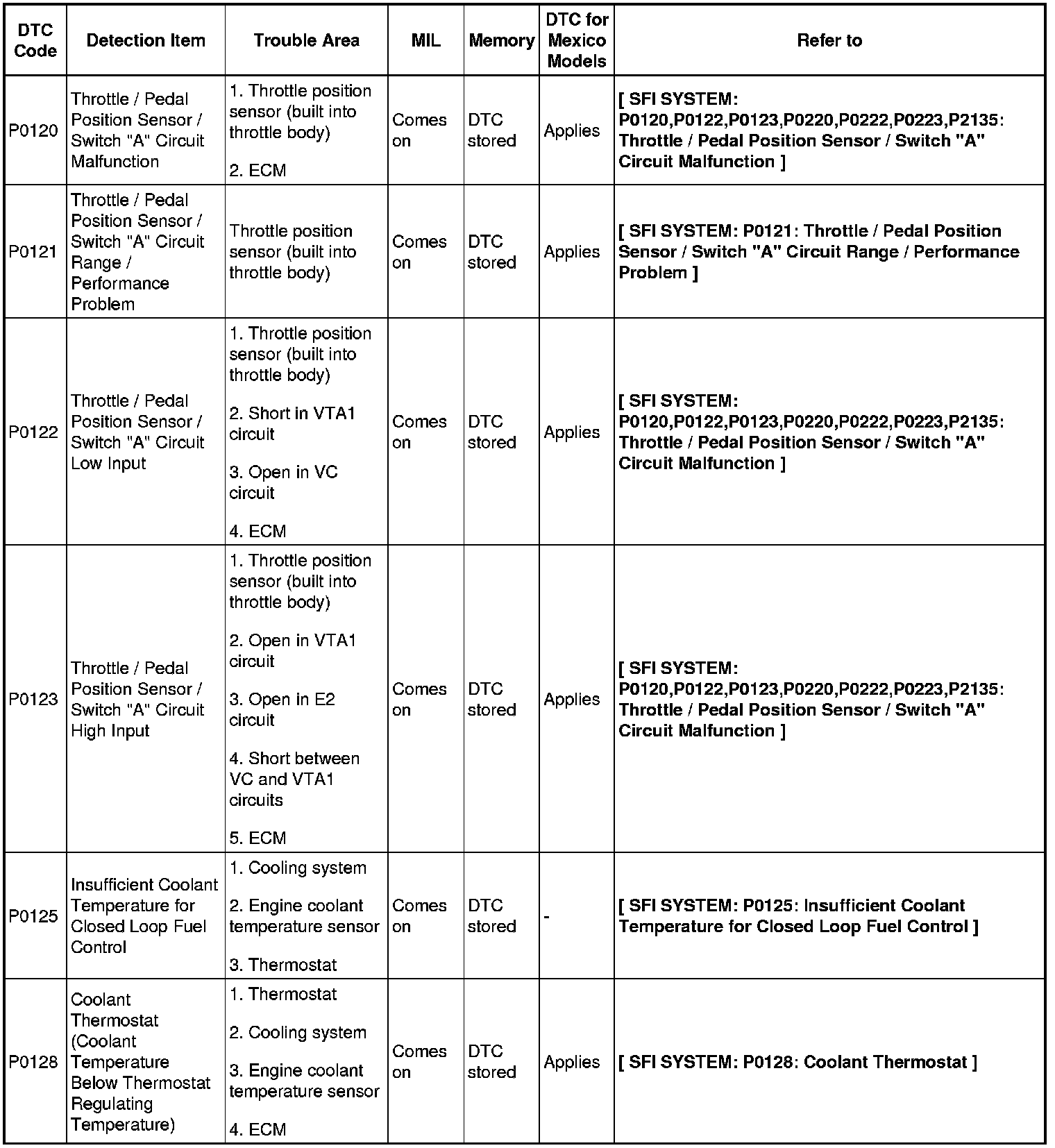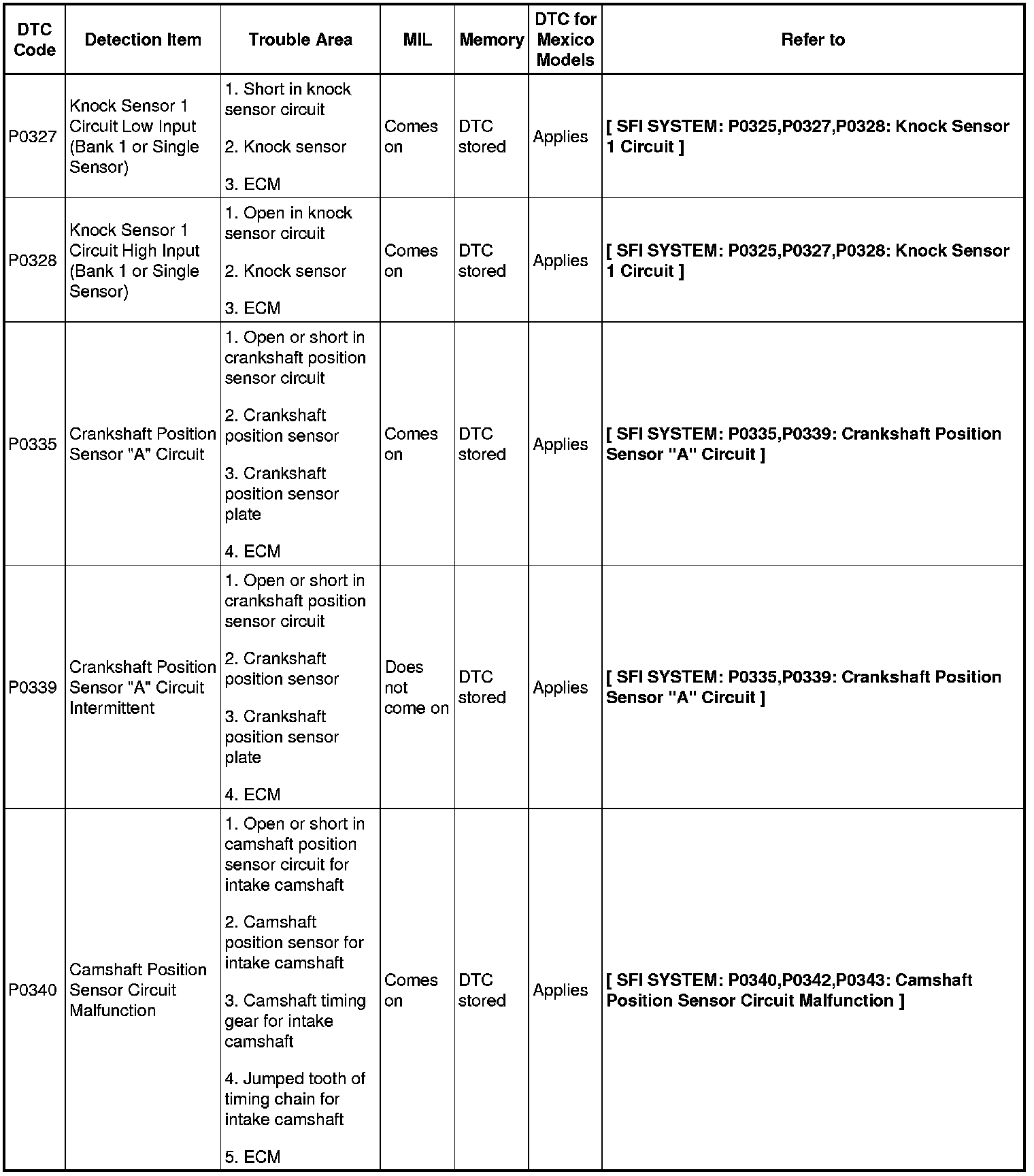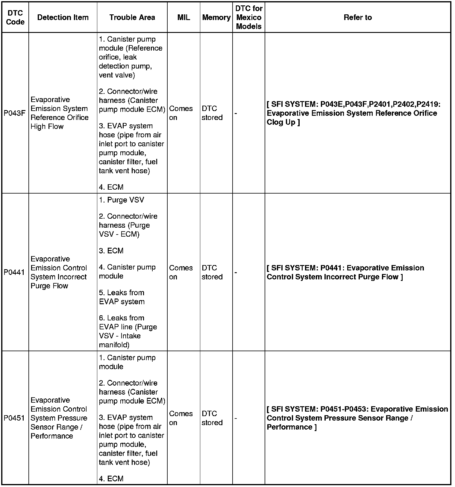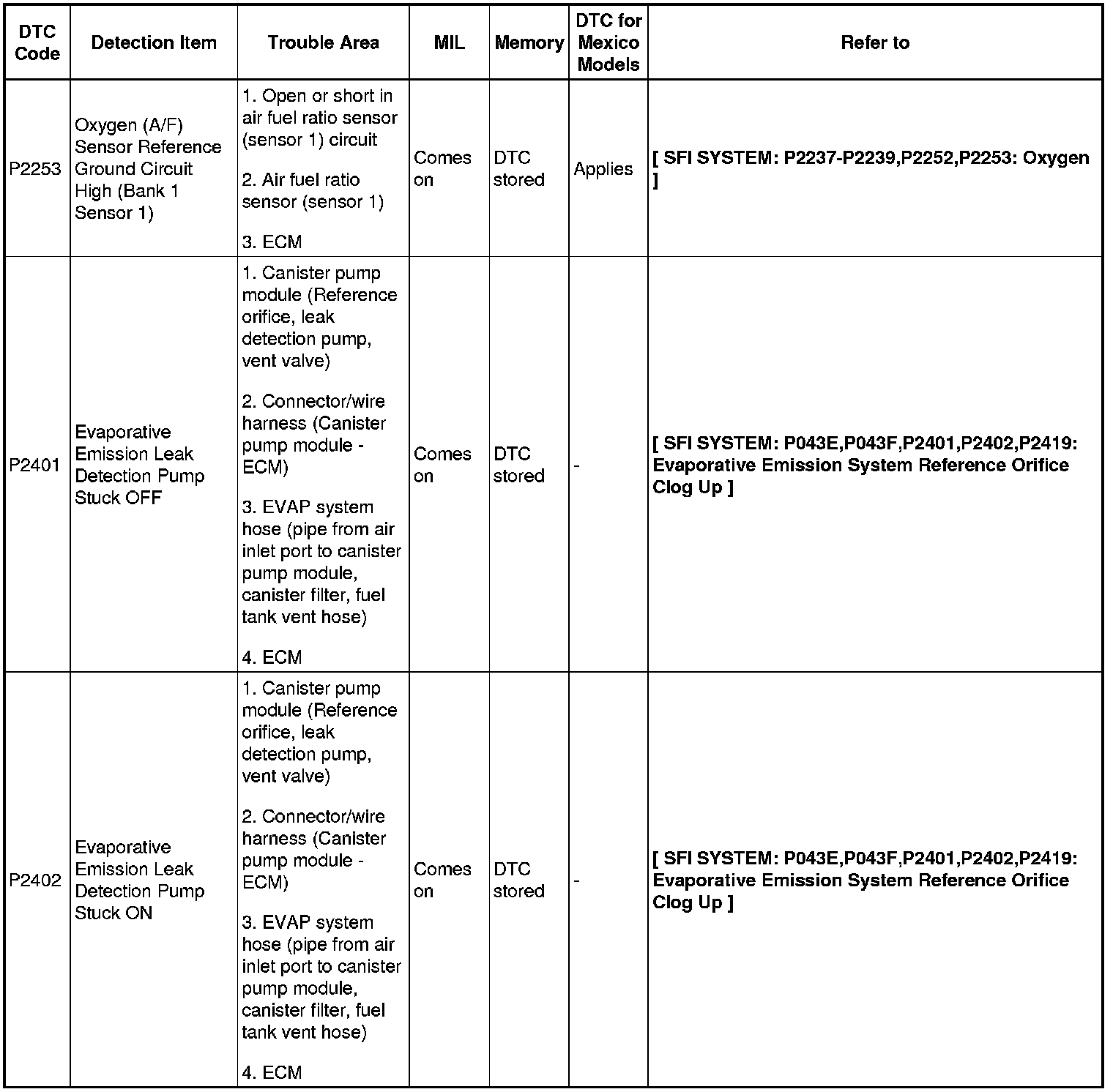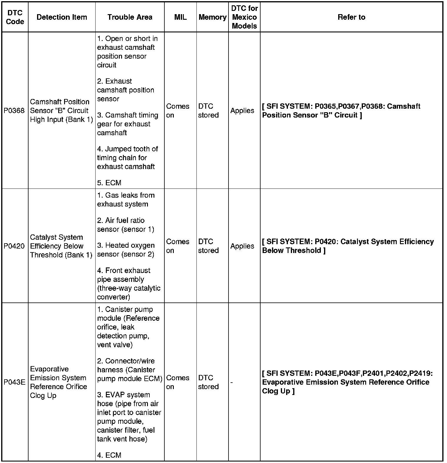 2ZR-FE ENGINE CONTROL: SFI SYSTEM: DIAGNOSTIC TROUBLE CODE CHART