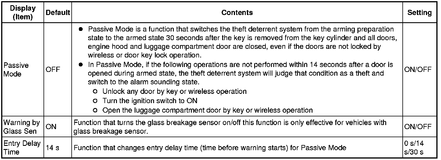 THEFT DETERRENT / KEYLESS ENTRY: THEFT DETERRENT SYSTEM: CUSTOMIZE PARAMETERS