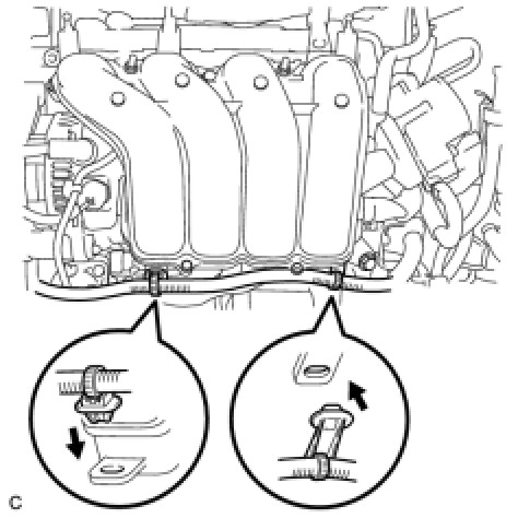 (b) Install the intake manifold and intake manifold stay with the 4 bolts and 2 nuts.