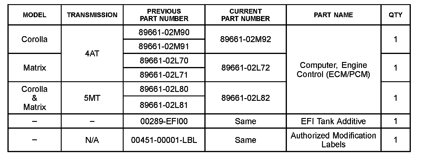 ^ ECM part number [Refer to the Parts Information section for the CURRENT PART NUMBER]