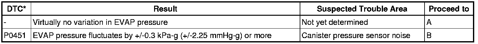 NOTE: If the reference pressure difference between the first and second checks is greater than the specification, all the DTCs relating to the reference pressure (P043E, P043F, P2401, P2402 and P2419) are stored.