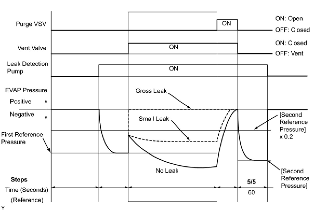 (b) Compare the EVAP pressure in step 3/5 and the second reference pressure (step 5/5).