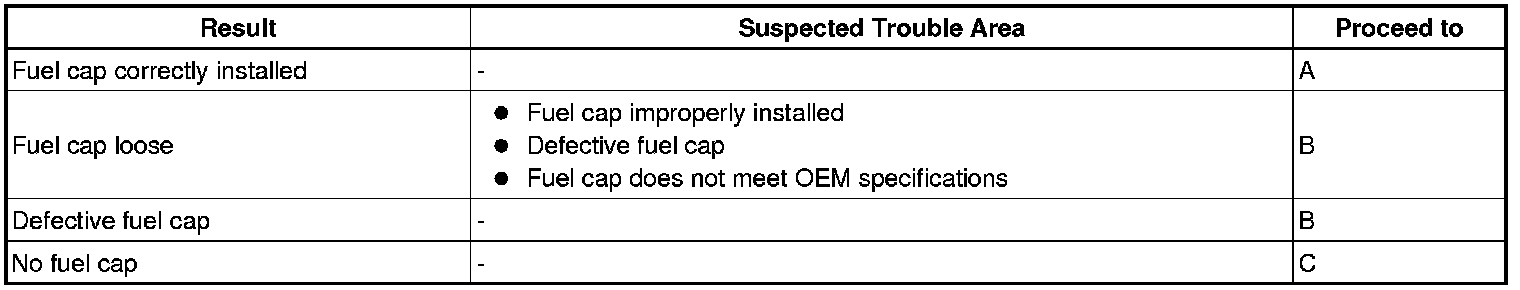 B -- CORRECTLY REINSTALL OR REPLACE FUEL TANK CAP