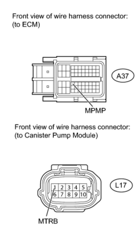 B -- CHECK HARNESS AND CONNECTOR (ECM - CANISTER PUMP MODULE)
