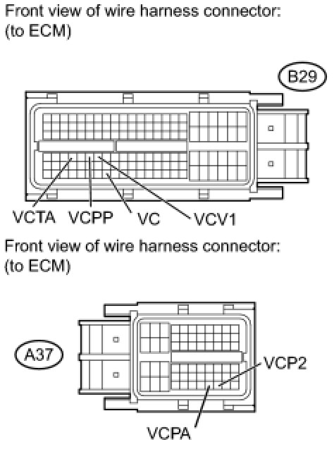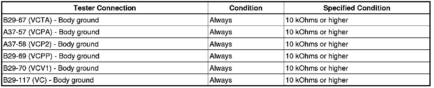When the VC circuit is short-circuited, the microprocessor in the ECM and sensors that are supplied with power through the VC circuit are inactivated because the power is not supplied from the VC circuit. Under this condition, the system does not start up and the MIL does not illuminate even if the system malfunctions.