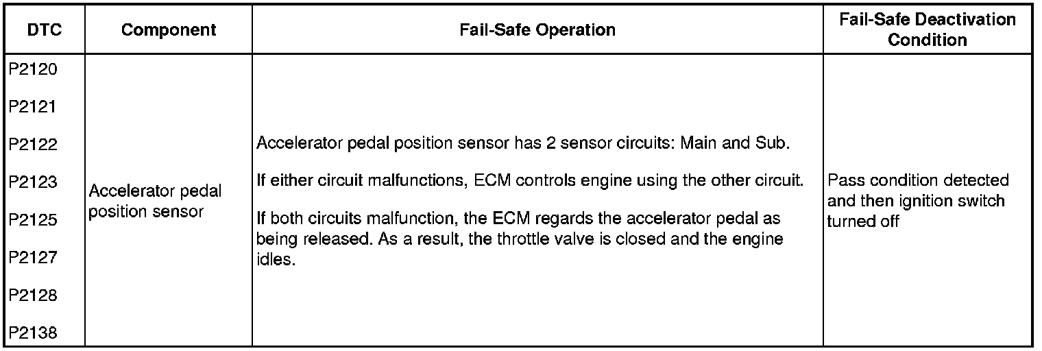 If any of the following DTCs are set, the ECM enters fail-safe mode to allow the vehicle to be driven temporarily or stops fuel injection.