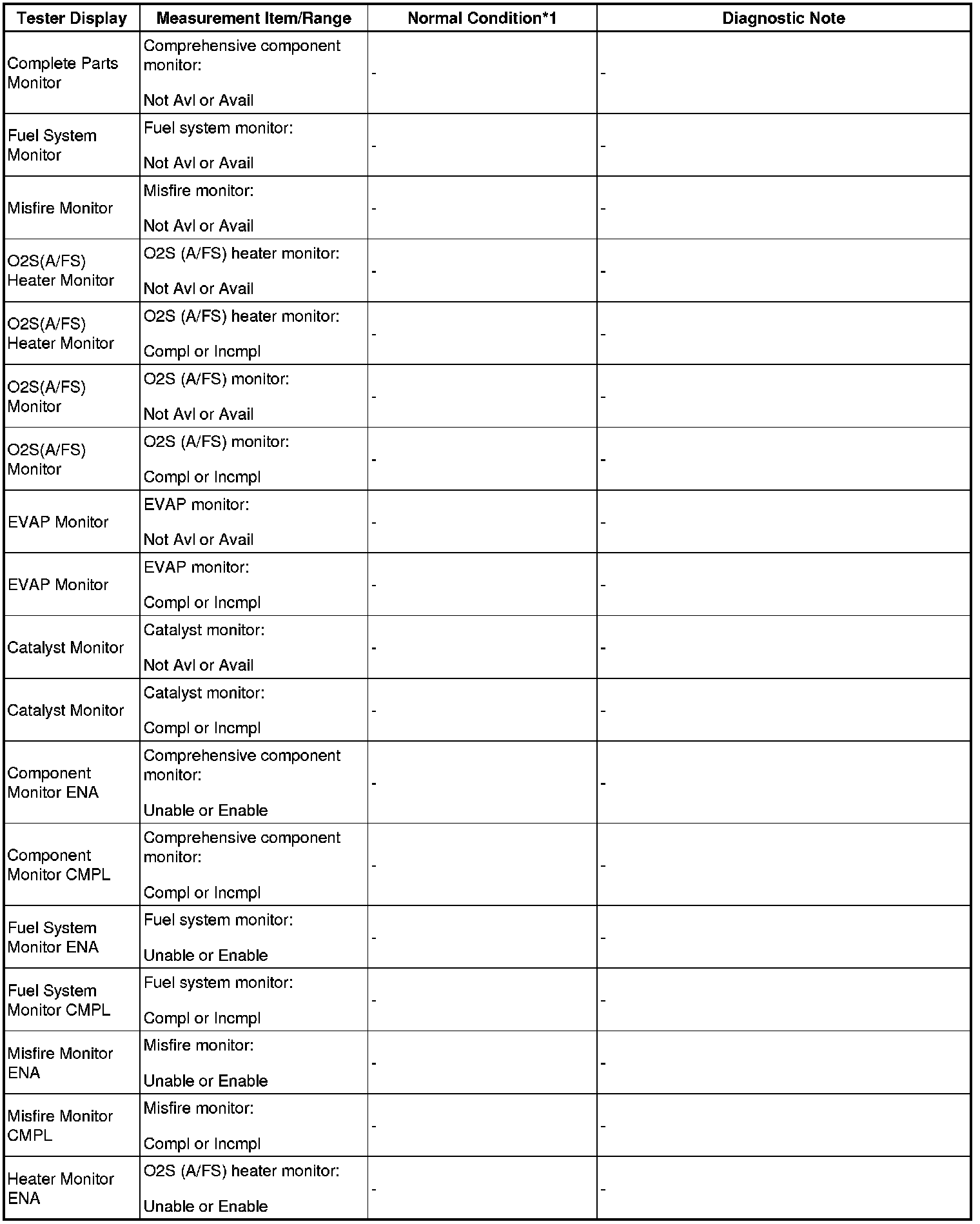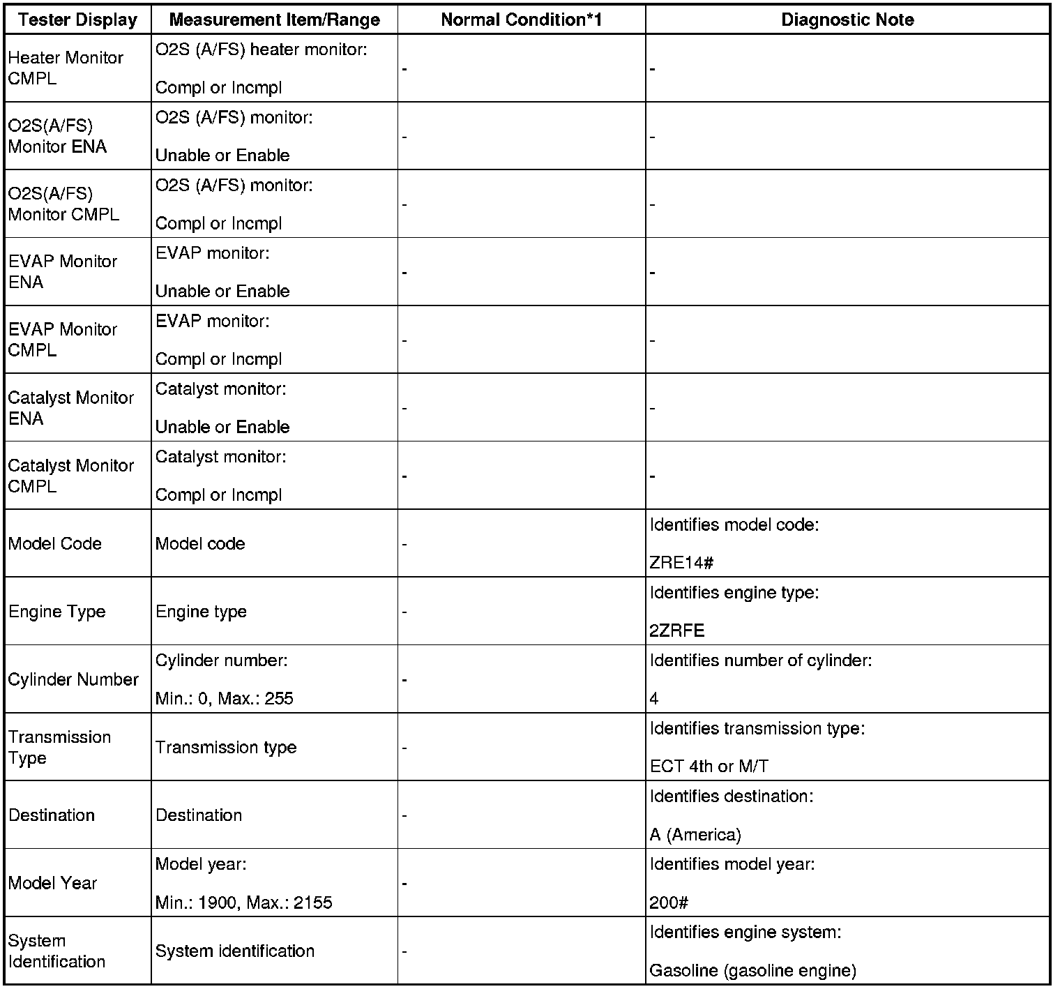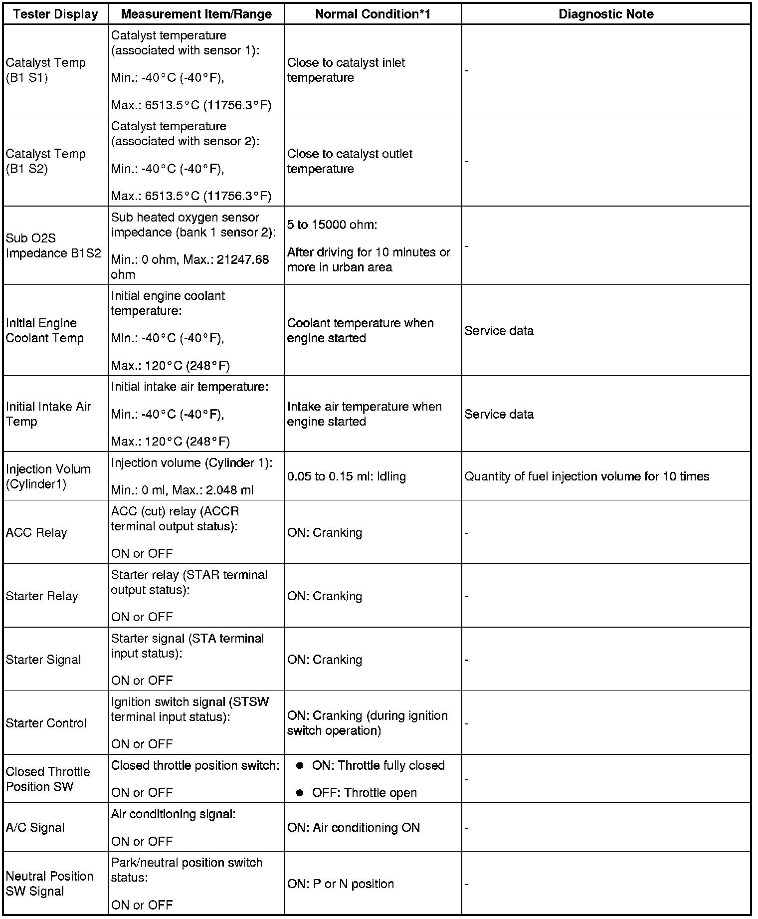 - *1: If no idling conditions are specified, the shift lever should be in N or P, and the A/C switch and all accessory switches should be off.