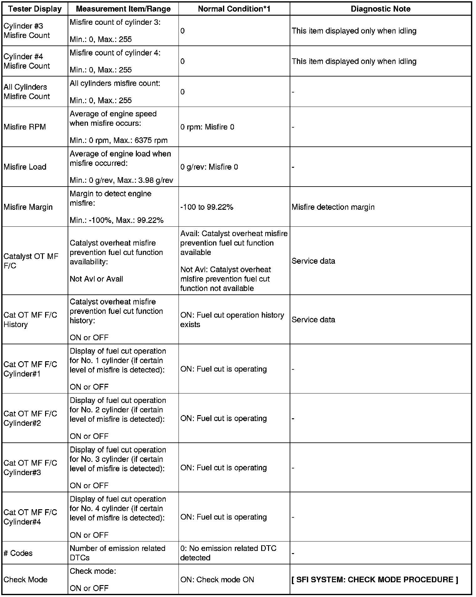 NOTE: *1: If the display of the Data List Catalyst OT MF F/C item is Not Avl, perform this Active Test with the vehicle stopped and the engine idling. If the display of the Data List Catalyst OT MF F/C item is Avail, perform this Active Test as described below.