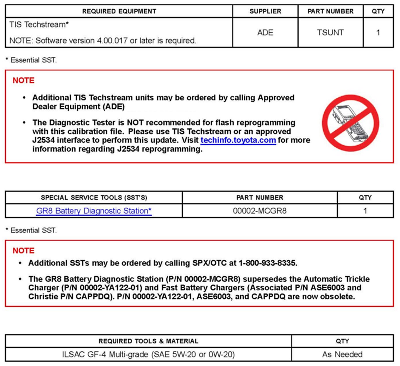 ^ Techstream software version has been updated in the Required Tools & Equipment section.