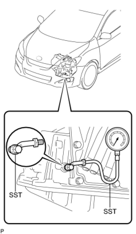 (2) Remove the test plug on the front left side of the transaxle case and connect SST.