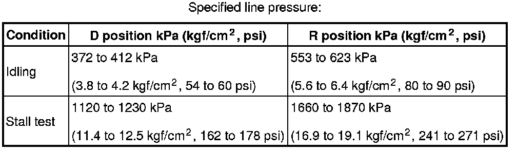 (8) Depress the accelerator pedal all the way down. Quickly read the highest line pressure when engine speed reaches stall speed.