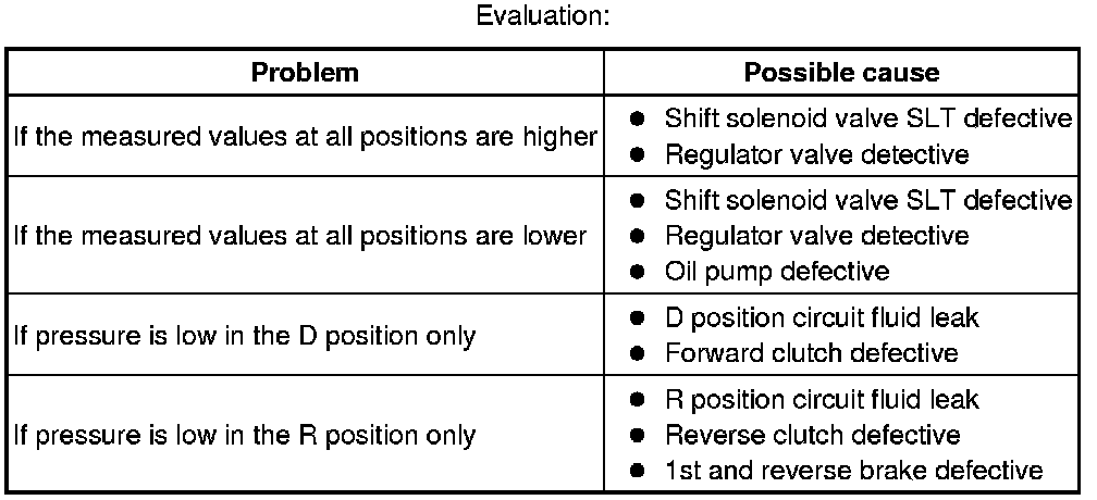 - Perform the test at the normal operating ATF (Automatic Transmission Fluid) temperature: 50 to 80°C (122 to 176°F).