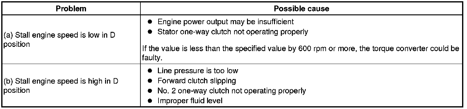 The object of this test is to check the overall performance of the transaxle and engine by measuring the stall speeds in the D position.