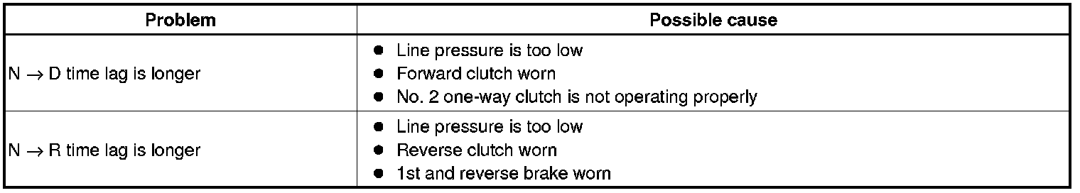 (5) Shift the lever from N to D position. Using a stop watch, measure the time from when the lever is shifted until the shock is felt.
