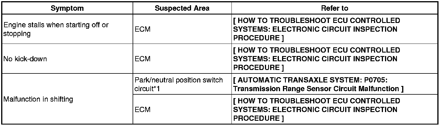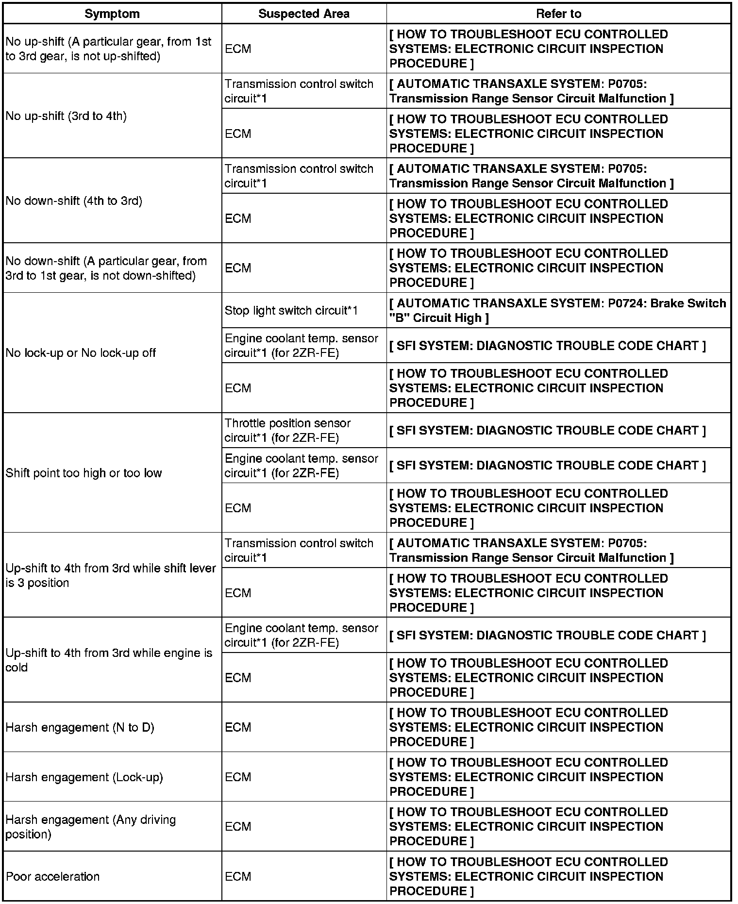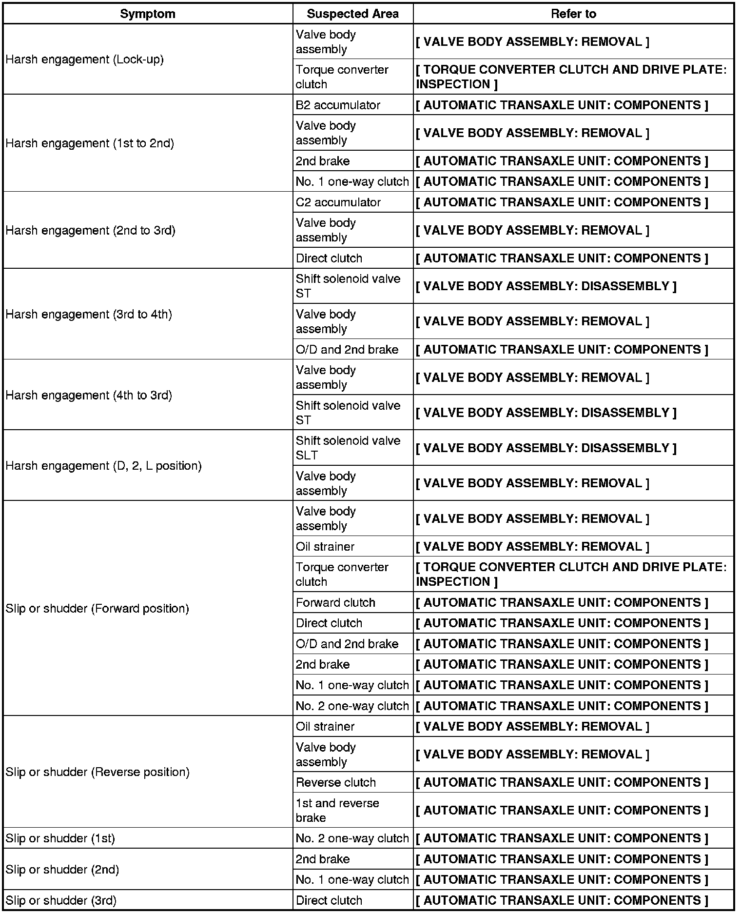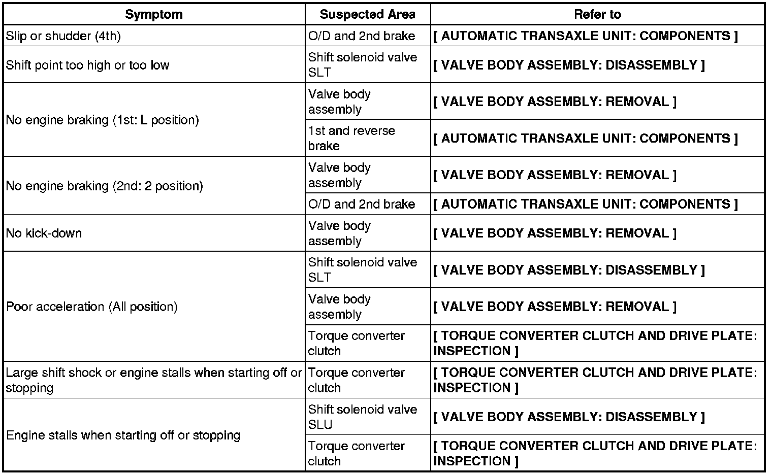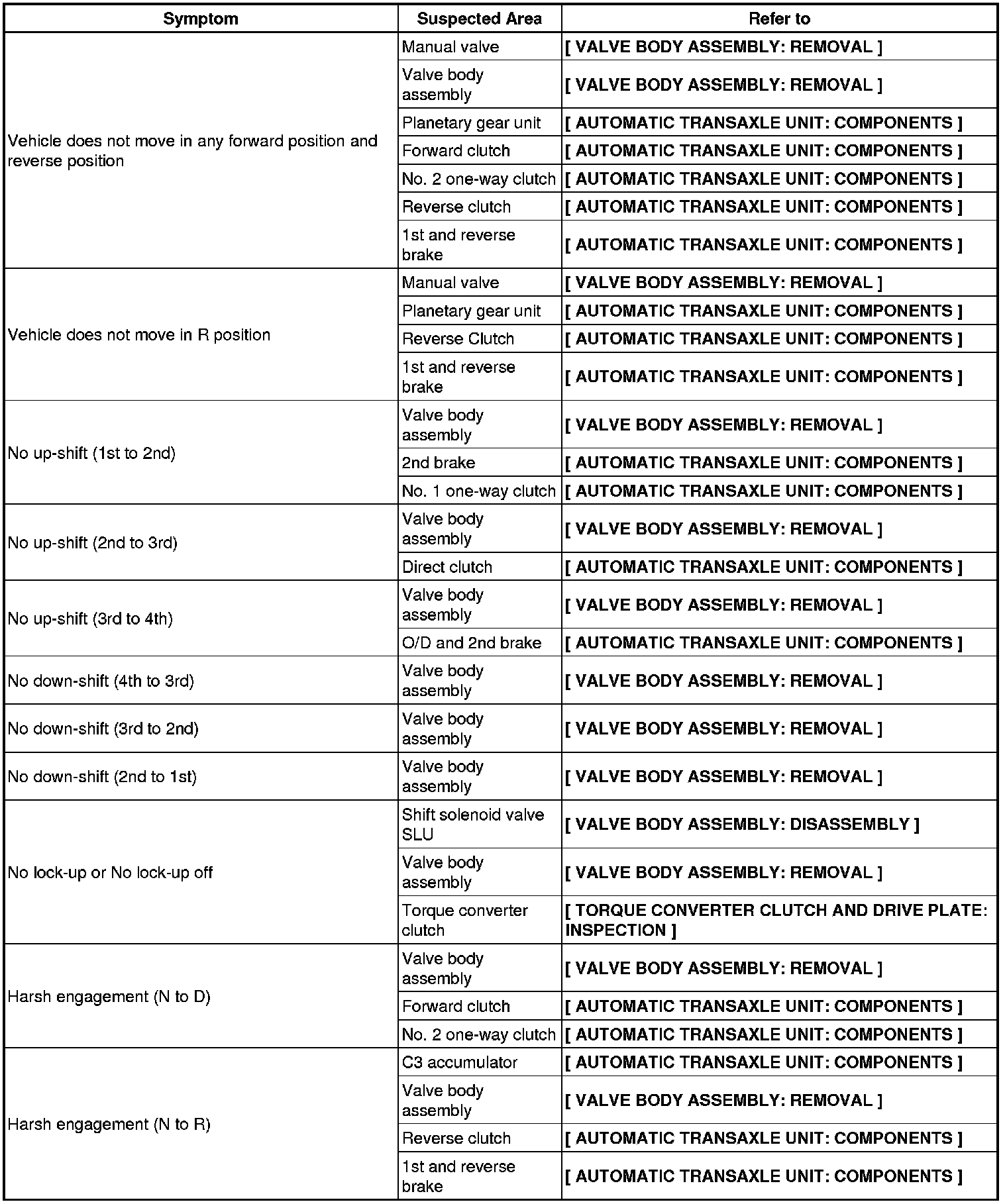 U341E AUTOMATIC TRANSMISSION / TRANSAXLE: AUTOMATIC TRANSAXLE SYSTEM: PROBLEM SYMPTOMS TABLE