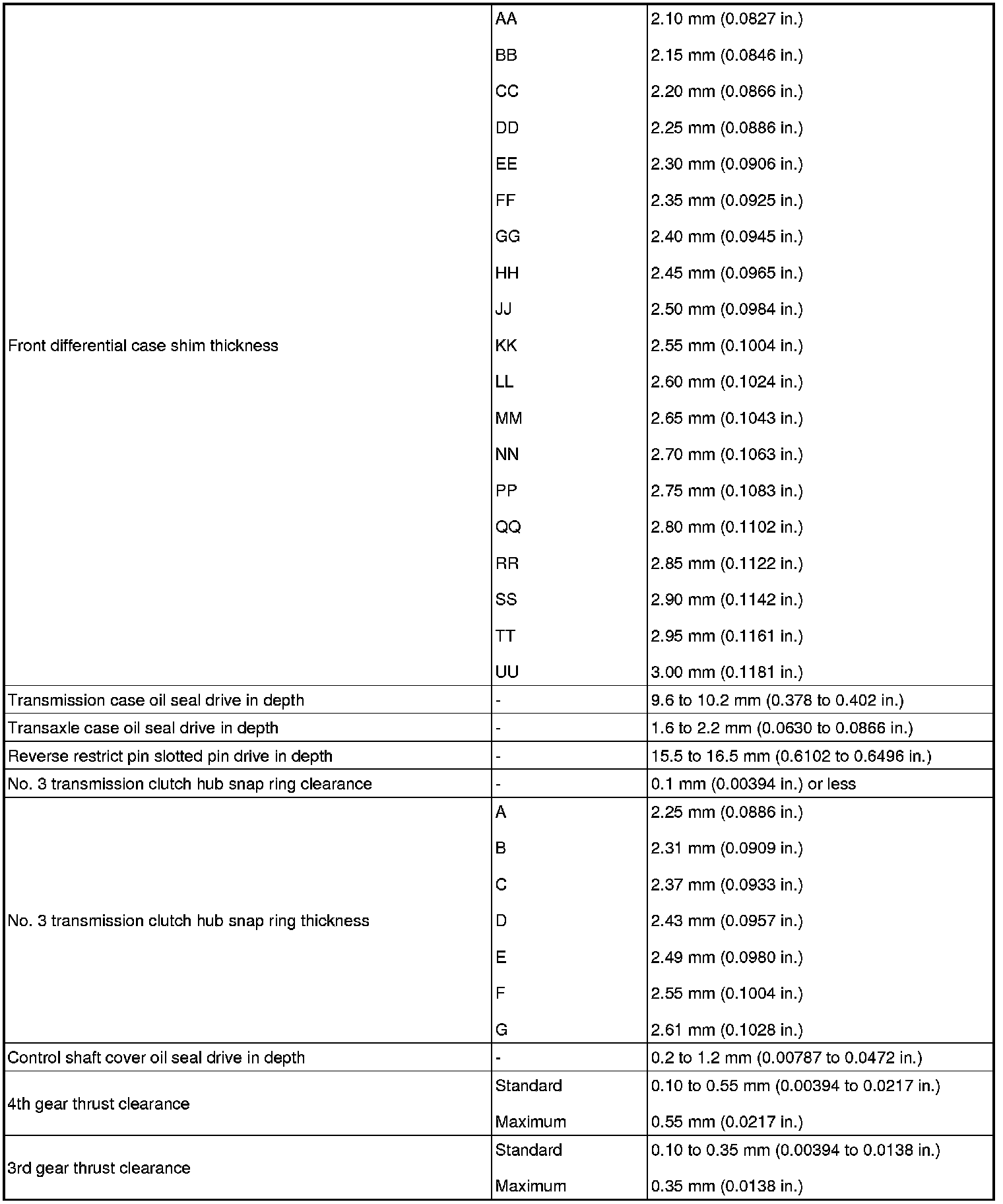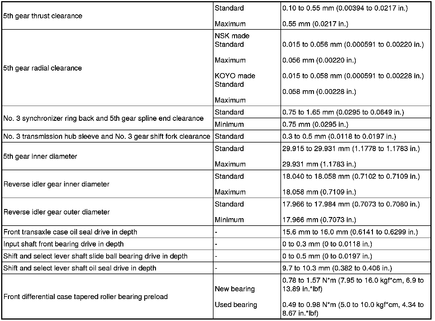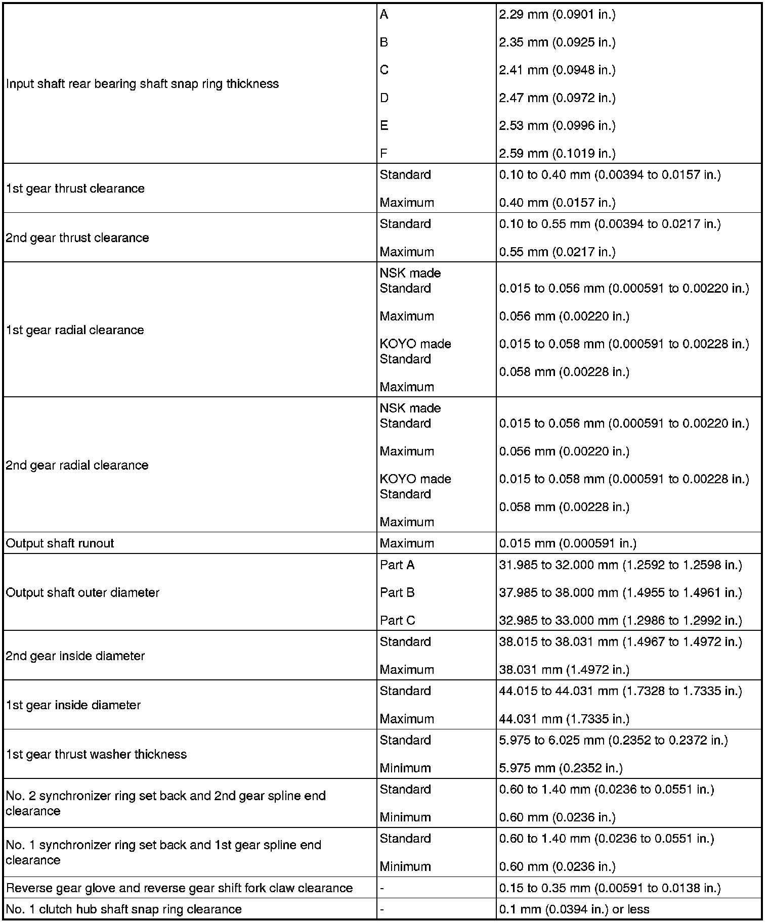 SPECIFICATIONS: C59 MANUAL TRANSMISSION / TRANSAXLE: SERVICE DATA