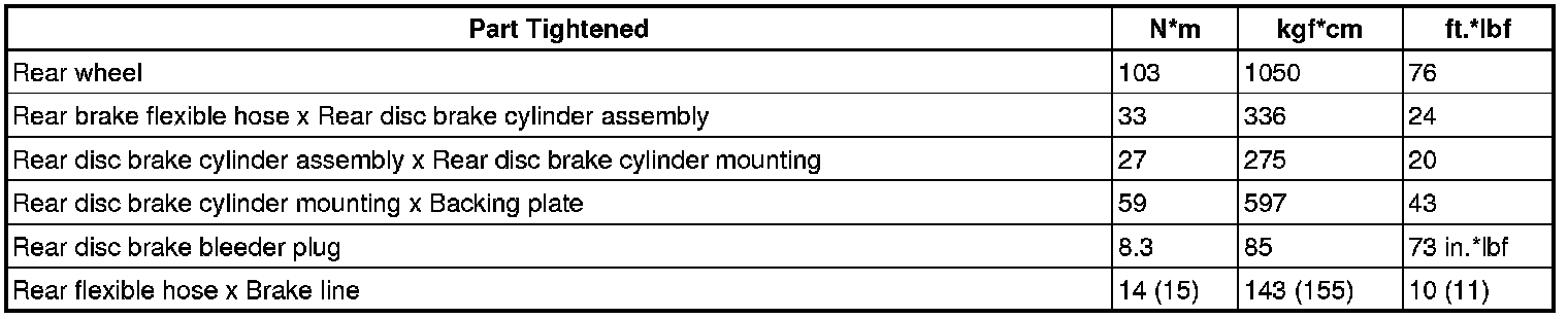SPECIFICATIONS: BRAKE (REAR): TORQUE SPECIFICATIONS