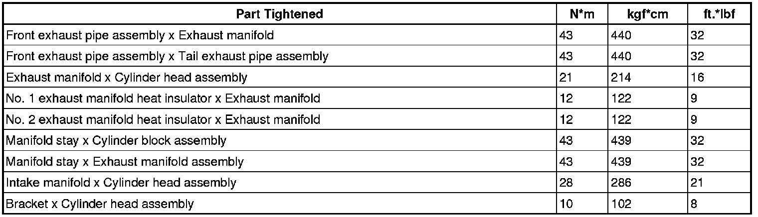 SPECIFICATIONS: 2ZR-FE INTAKE / EXHAUST: TORQUE SPECIFICATIONS