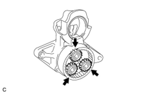 (a) Remove the 3 planetary gears from the starter center bearing clutch sub-assembly.