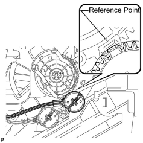 (a) Position the gear of the air mix damper control cable sub-assembly and the unit gear as shown in the illustration, and install the air mix damper control cable sub-assembly.